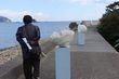 出羽島アートを見学して、牟岐港に向け出航したところです。
