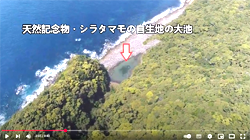 大池に自生している、国指定天然記念物のシラタマモと、出羽島の全景ビデオ。
