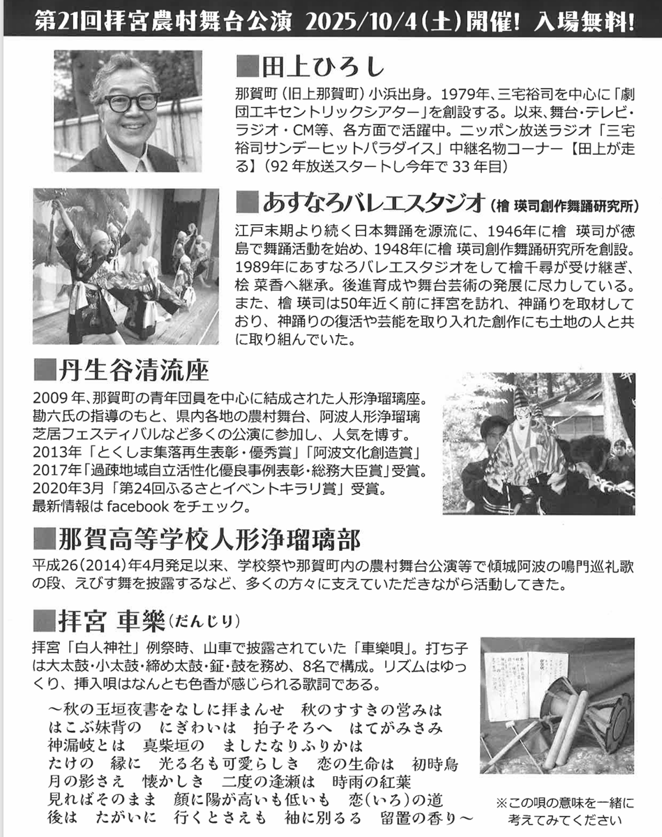 例年、拝宮農農村舞台、公演日の半数は、雨天らしいが、今年は、汗ばむほどの、お天気でした。