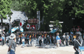 太鼓屋台(ちょうさ、と言います)には、4人の子供が乗って、太鼓を打ち鳴らしていました。