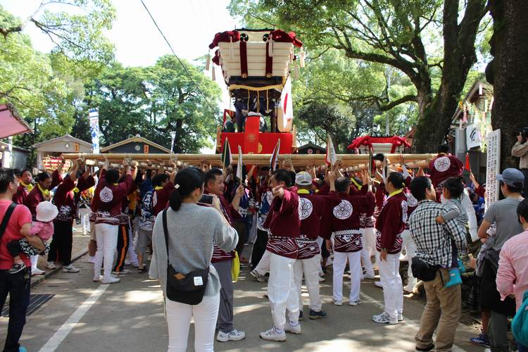 お祭は 2日間に亘って行われ、土曜日は、神輿や”ちょうさ”と呼ばれる”太鼓屋台”の ねり、奉納花火が行われます。
